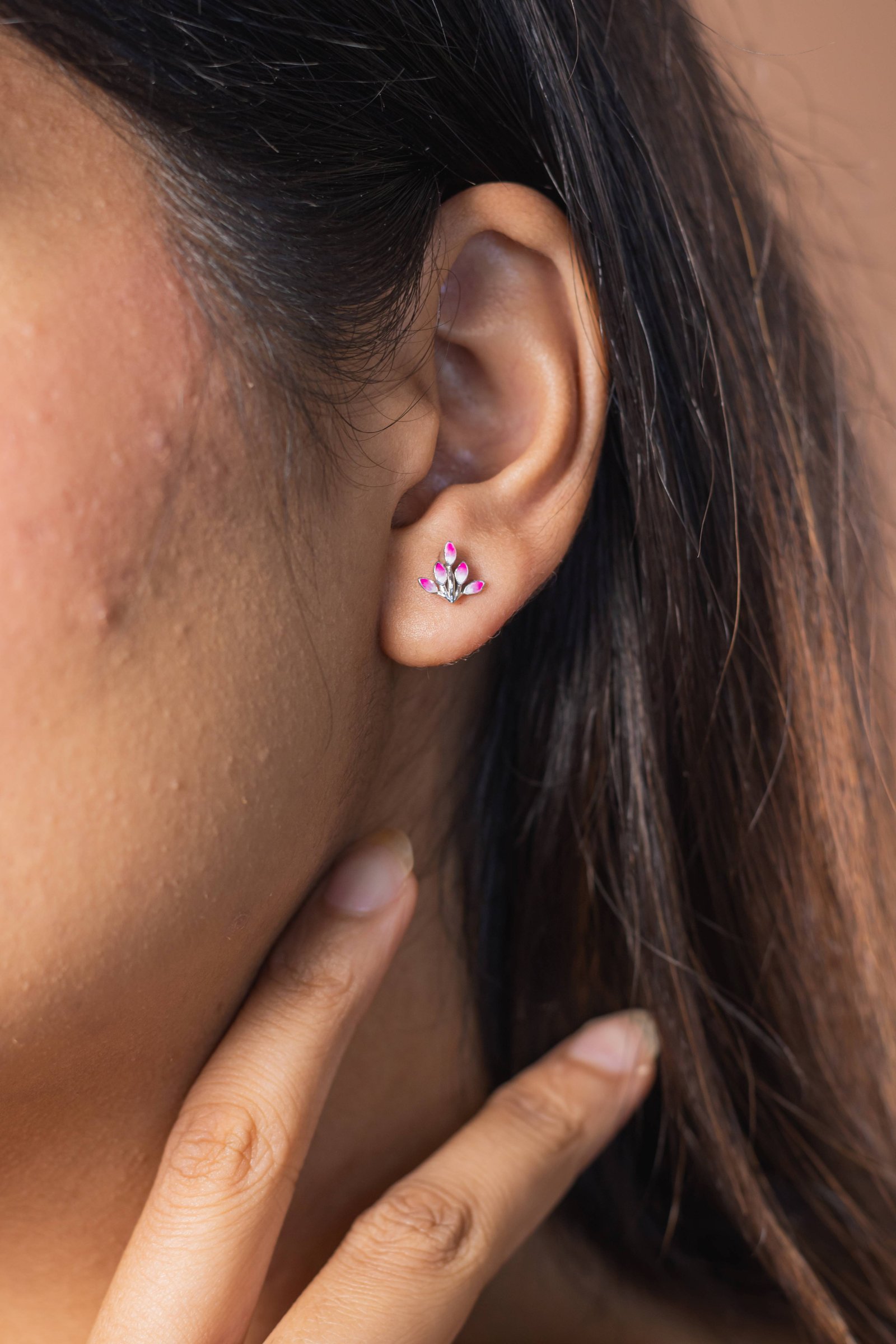 Delicate, vibrant, and effortlessly chic, the Mini Flower Petals Enamel Earrings from Drishna are a must-have accessory for any jewellery lover.