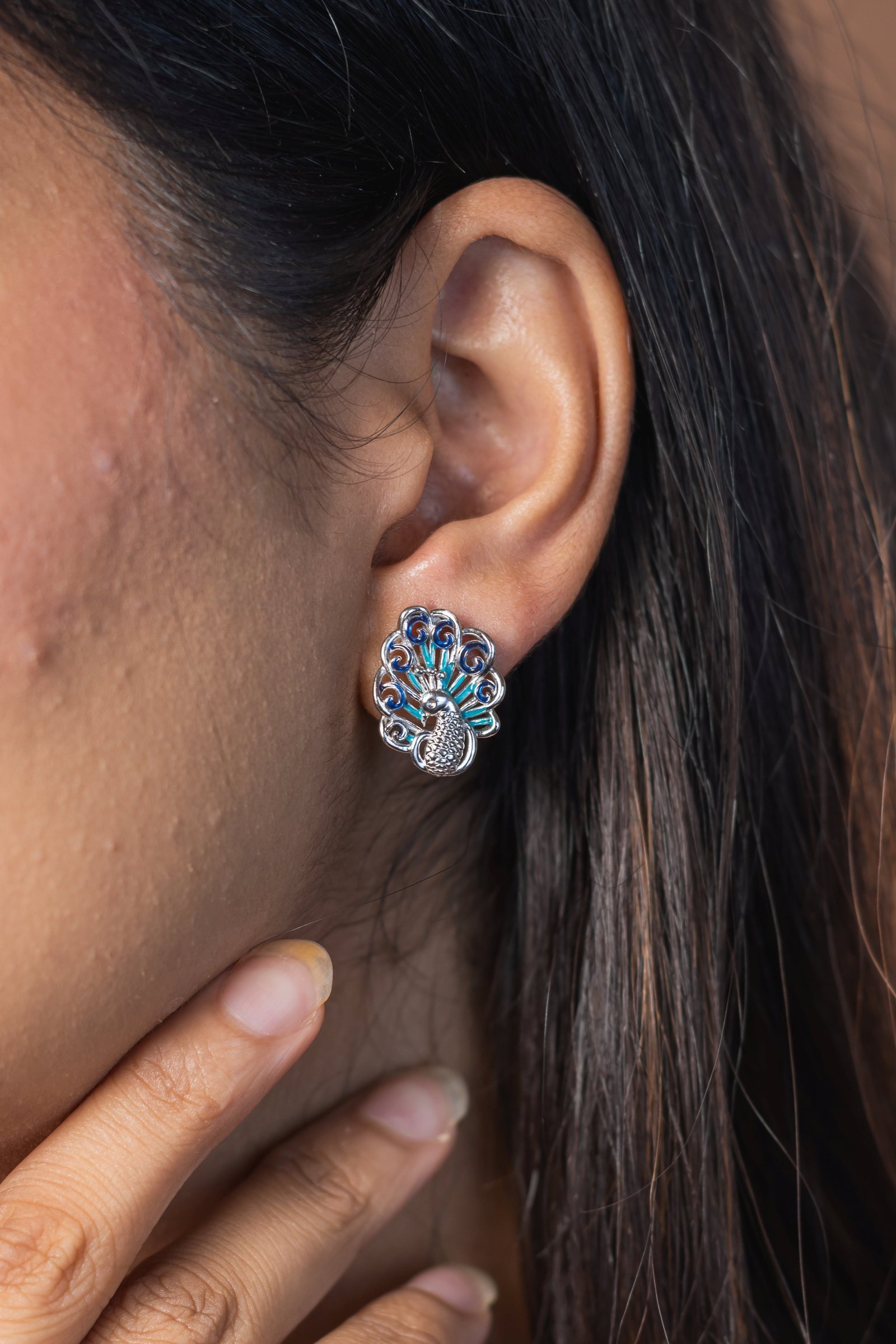 Embrace elegance with these stunning enamel peacock earrings – a unique blend of tradition and modern artistry.