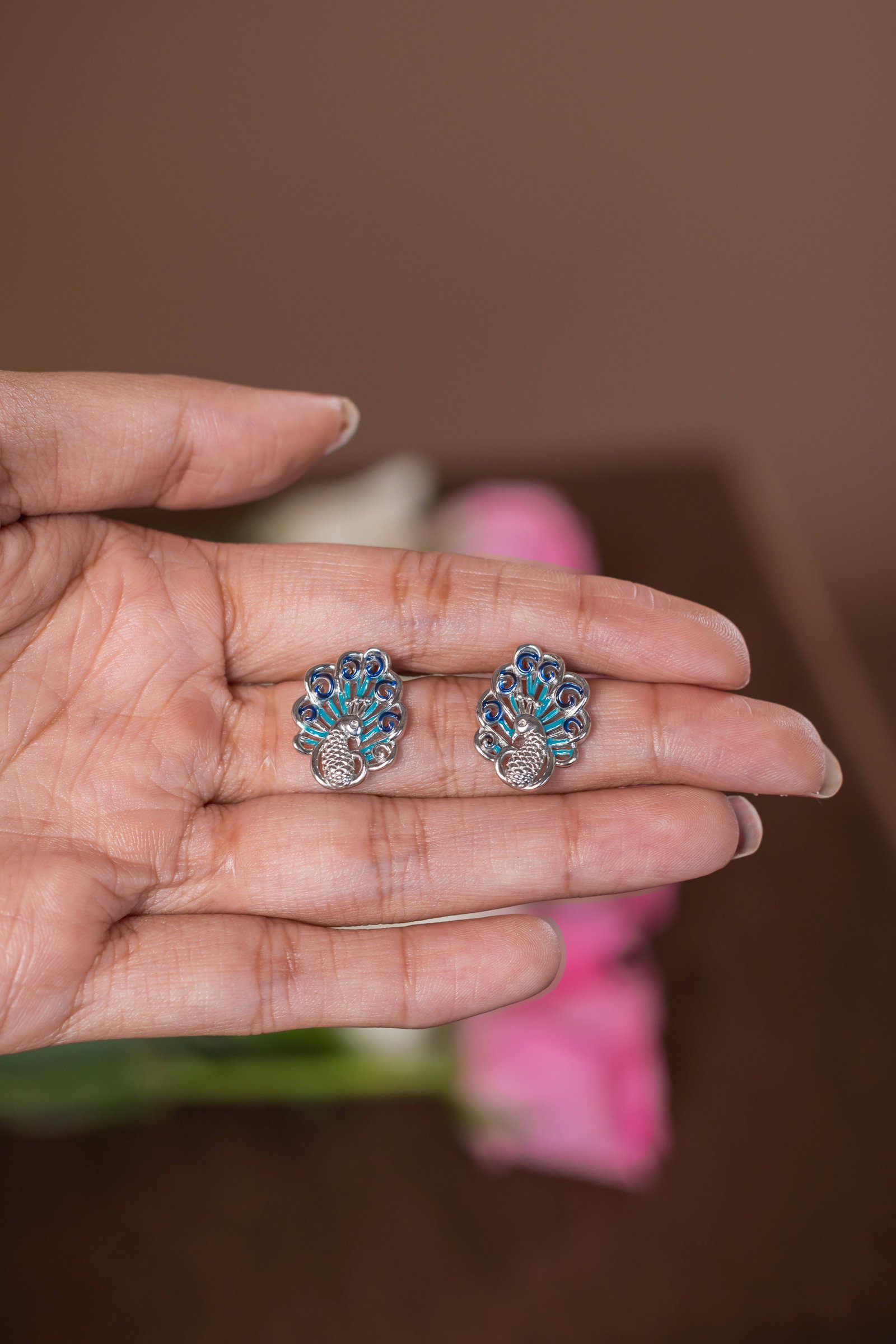 - Elegant Design: Beautifully crafted silver earrings featuring vibrant enamel work inspired by the majestic peacock, symbolizing grace and beauty.